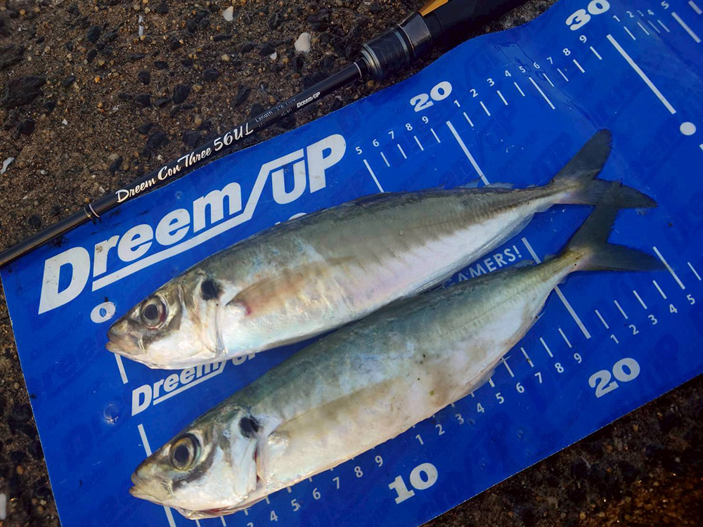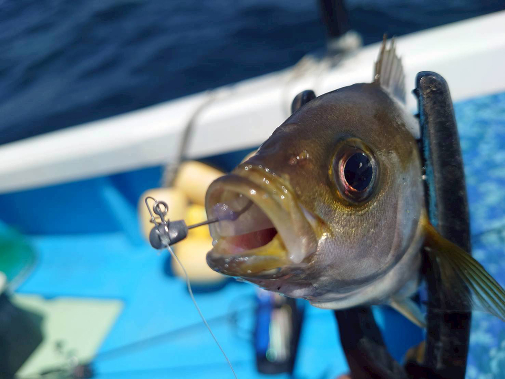 マルアジはDD8 2〜2.5inchのダートゲームやプチダッカー9gで手返し優先で幅広くサーチしながら、回遊が近くに寄ったらグリリン 1.6inch等でフォローを入れる感じで釣りを展開してます。
