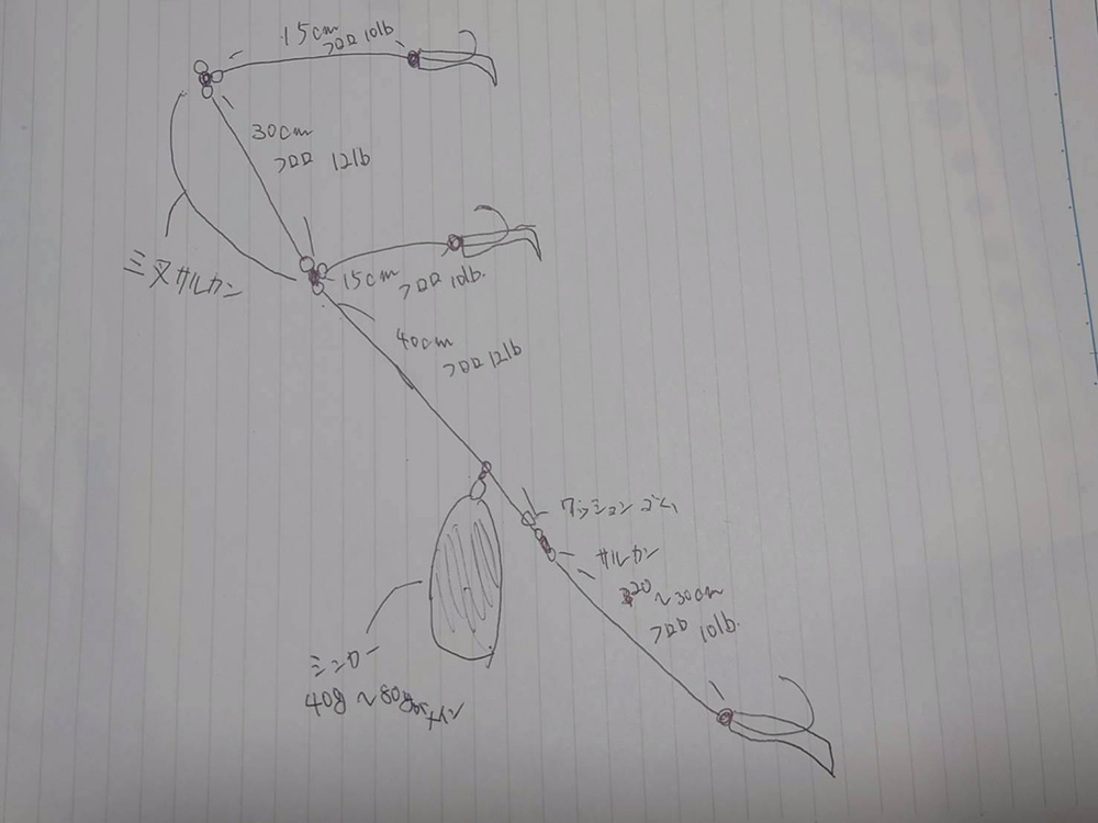 シンカーは主に40g〜80gを潮の早さによって使い分けてる感じです。