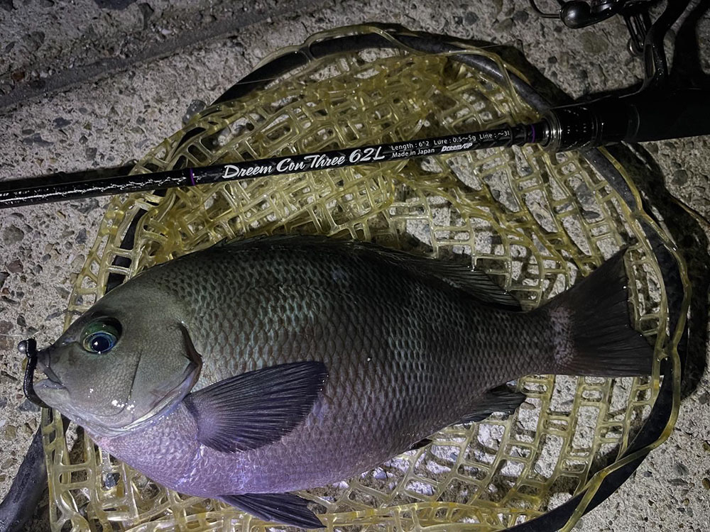 当日は南西5m/sのまあまあな風でしたが、ラインメンディングとDreemConThree62L菫のロッド感度でトータル5枚キャッチ。まだまだ開拓途中なジャンルなのですがアジングタックルそのままでファイトもパワフルなので興味のあるライトゲーマーさんは是非やってみてはいかがでしょうか?