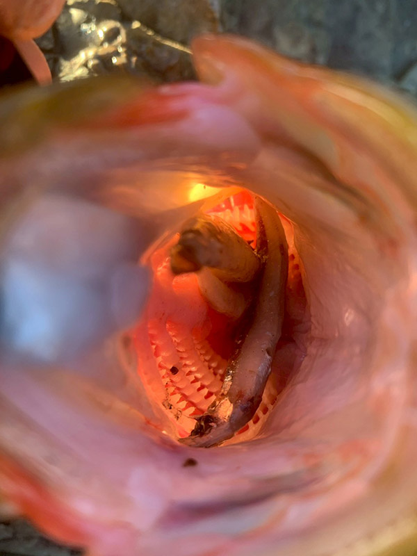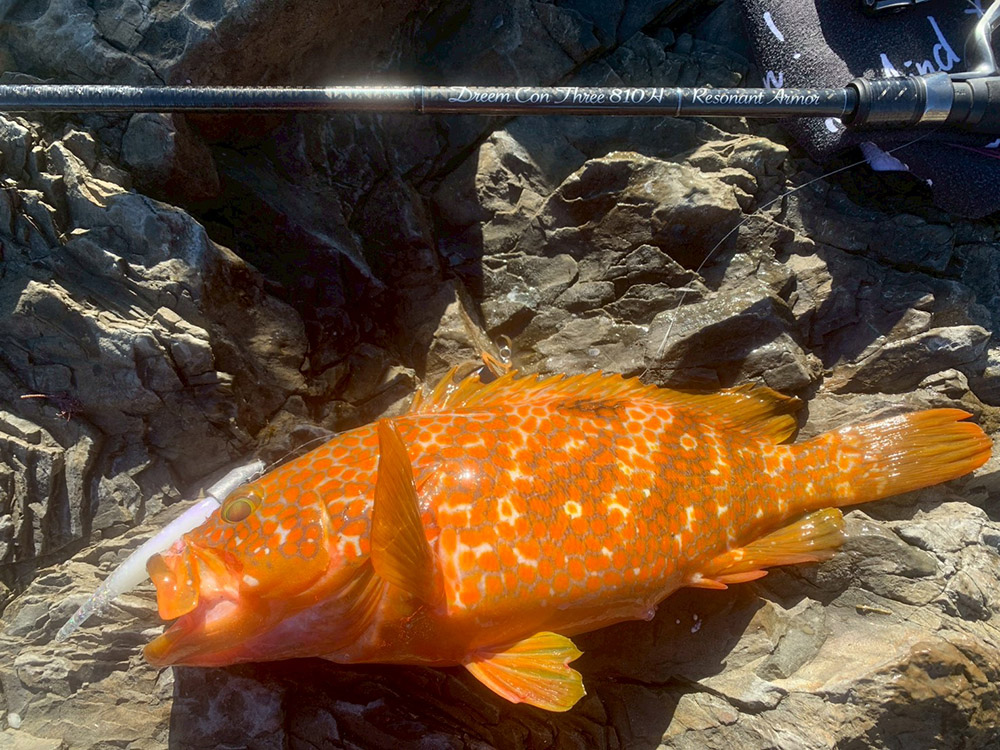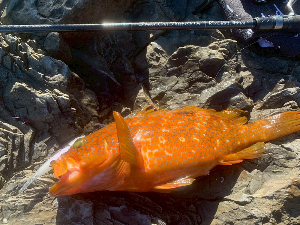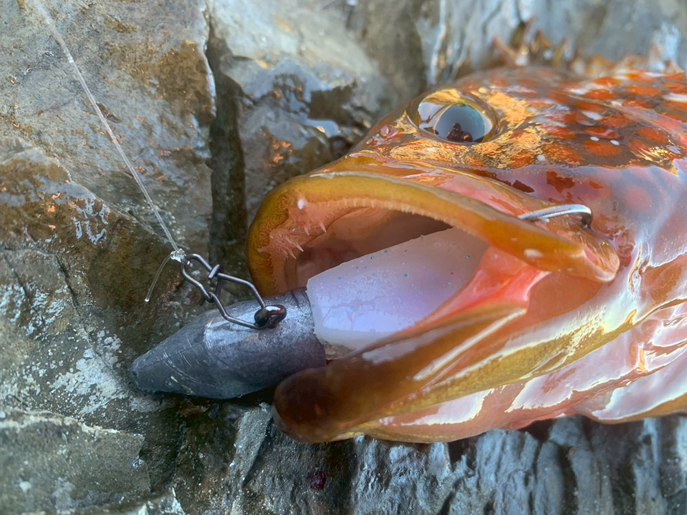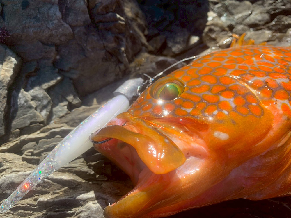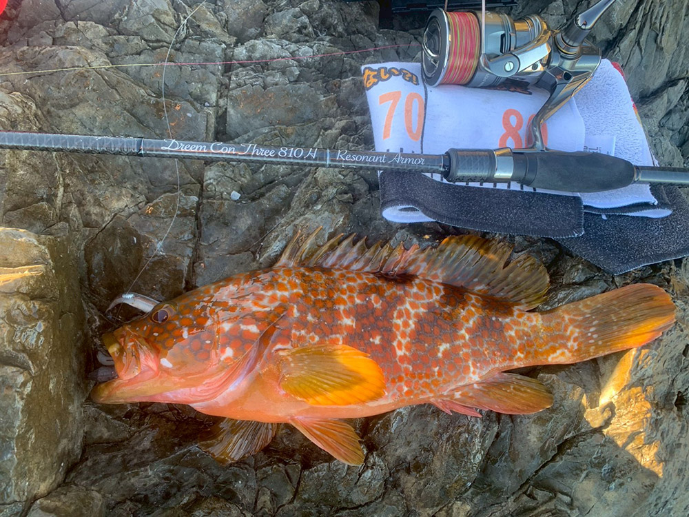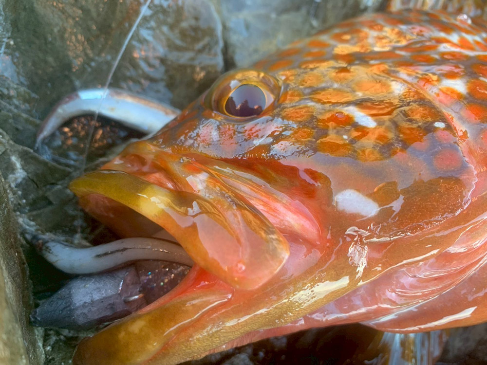 たっぷりキビナゴを捕食しており、朝マヅメとベイトが絡んで上を向いていたナイスなアコウ!