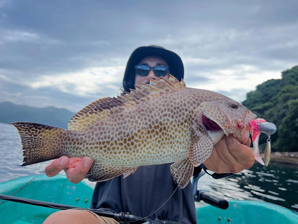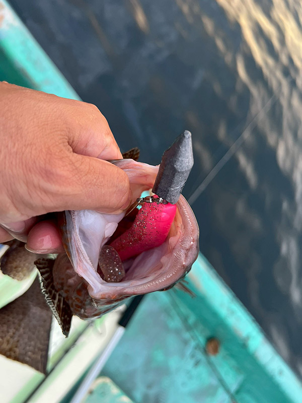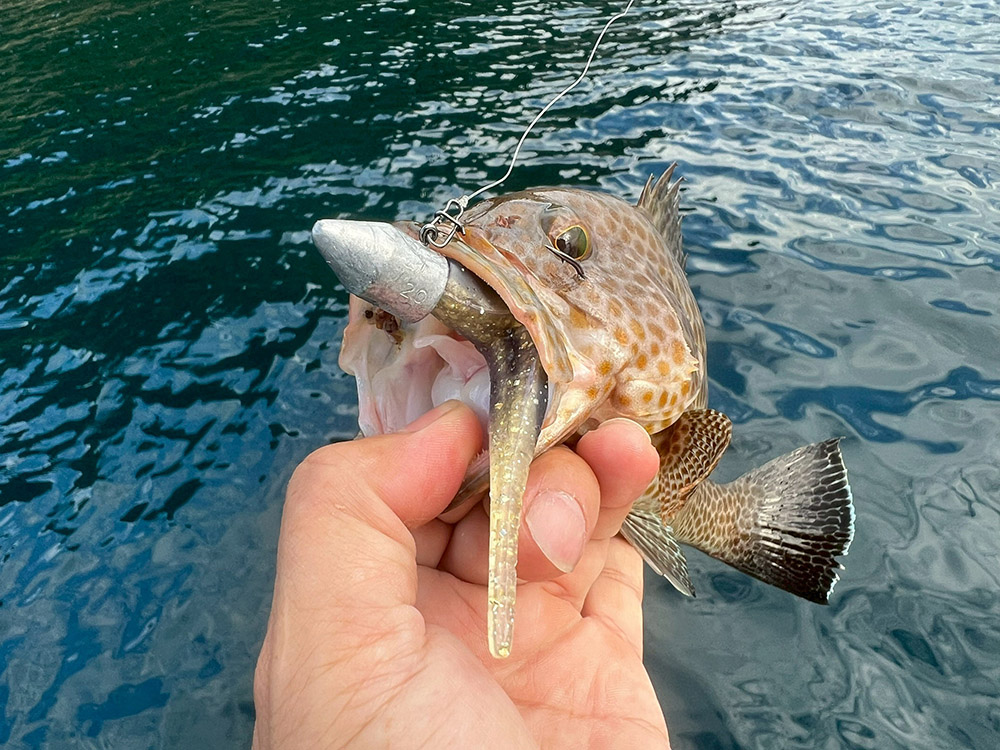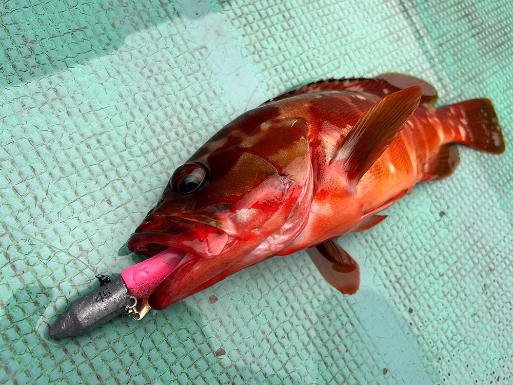 ドリームシャッドよりフォールスピードが早く、DSヘッドディープ45グラムとの組み合わせで手返しよく広範囲を攻める事ができ、良型オオモンハタ、アカハタ大爆釣でした。