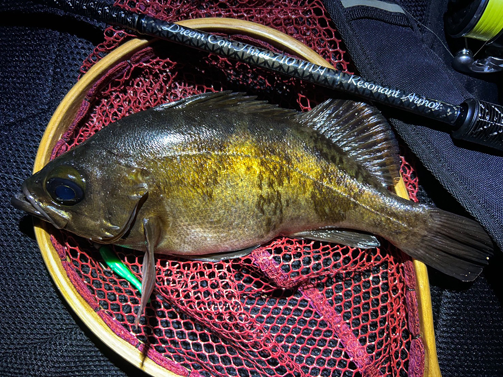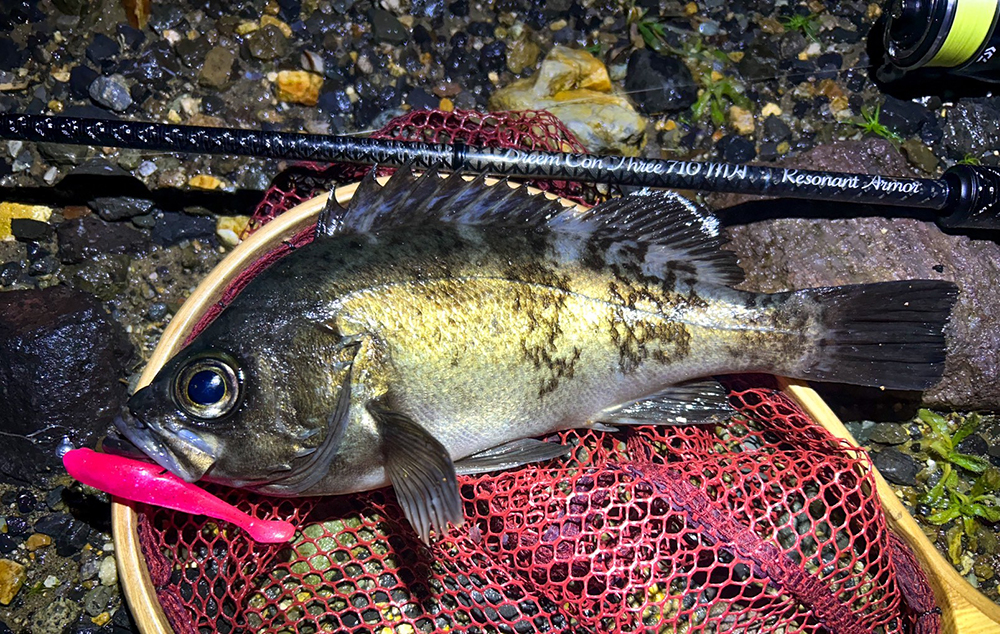 中層、ボトムでの軽いダートが活性の良いメバルを誘い出してくれます。