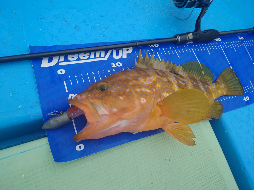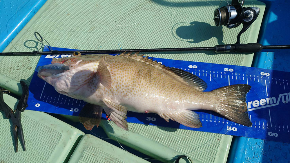 またマイボートで、ジギング等をやりながら合間で沖の漁礁に対してバーチカルにワームを入れてロックフィッシュを狙ったりするのにも使用しています。