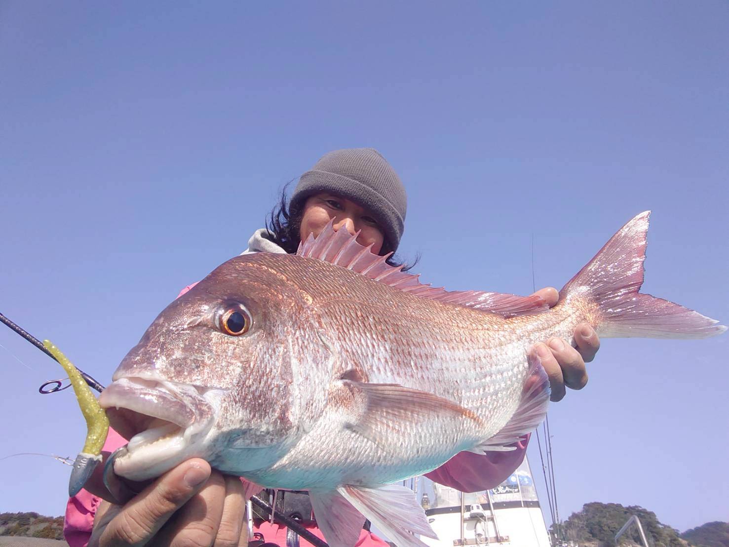 それでも地形とベイトを当てながら『リーンシャッド2.6inch』+『DD-HEAD25 10g』を入れてやると、しっかりと真鯛を連れてきてくれます。