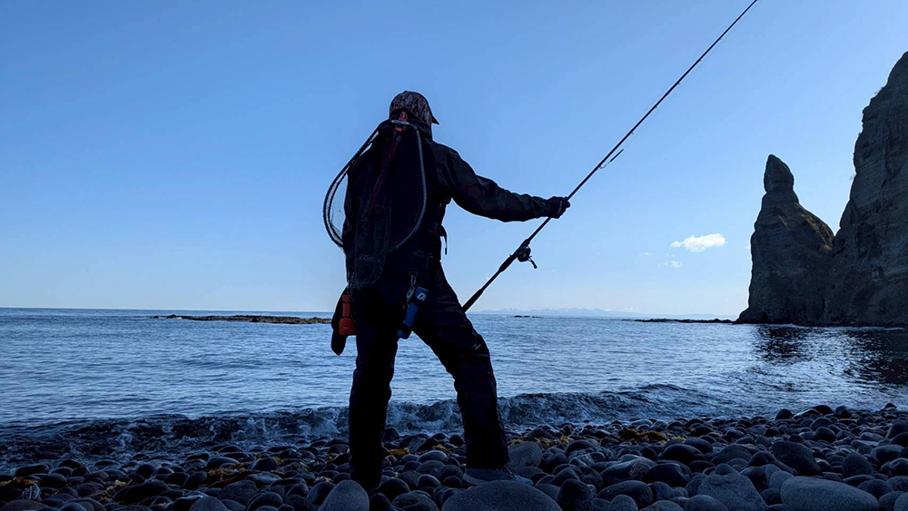 右肩を負傷しながらも40gのメタルジグをフル遠投。